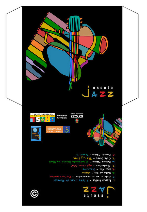 Design and illustration for the "Escuta Jazz" CD. It is a project I did for CCJ (Centro Cultural da Juventude - São Paulo, Brazil) for copyleft and independent jazz musics :)